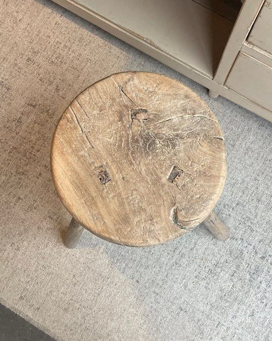 Oud olmen houten krukje vier poten
